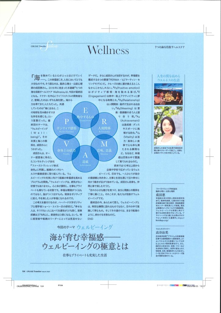 弊社臨床心理士・公認心理師が雑誌「クルーズトラベラー」に掲載されました。