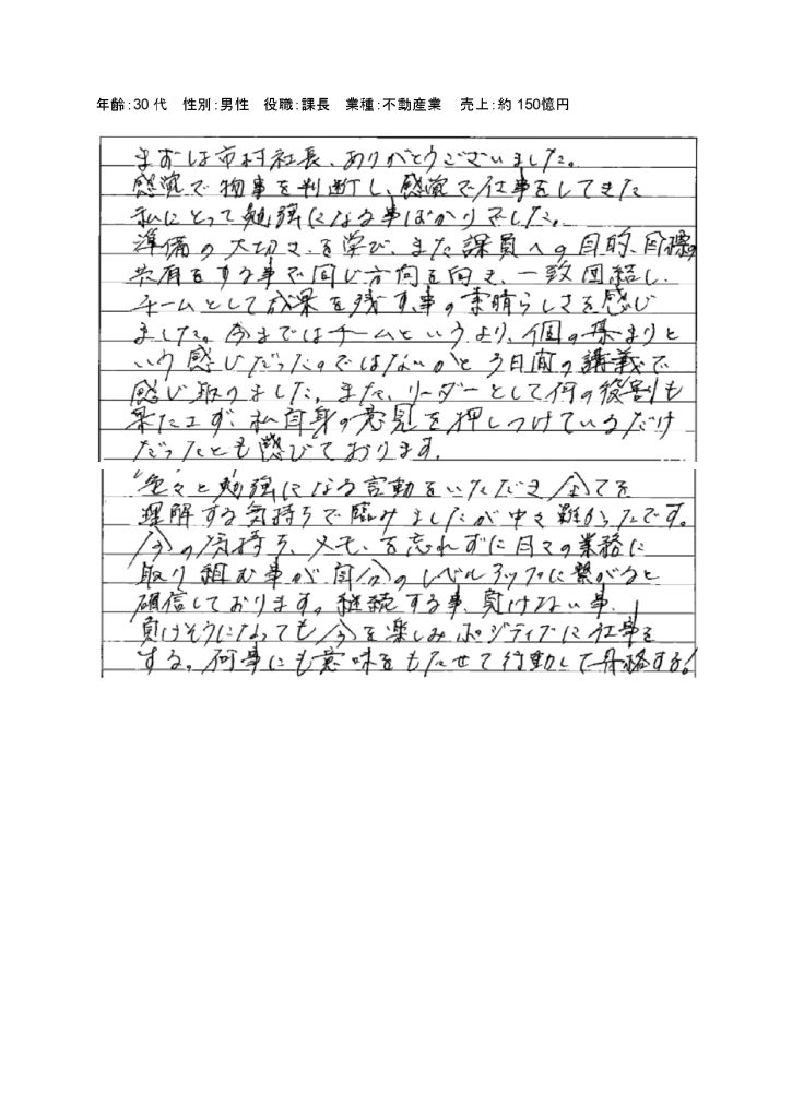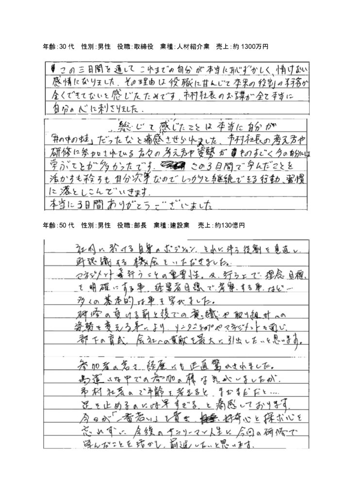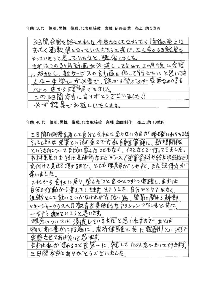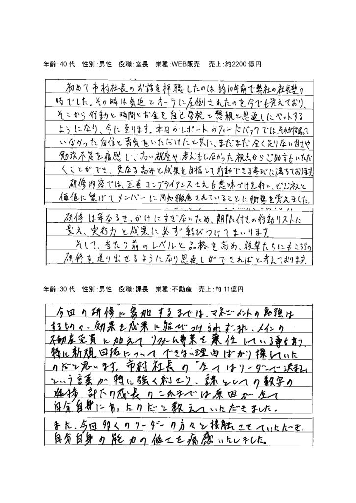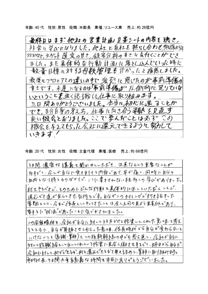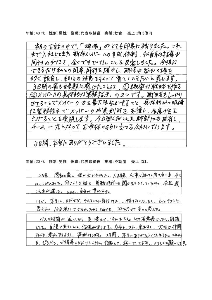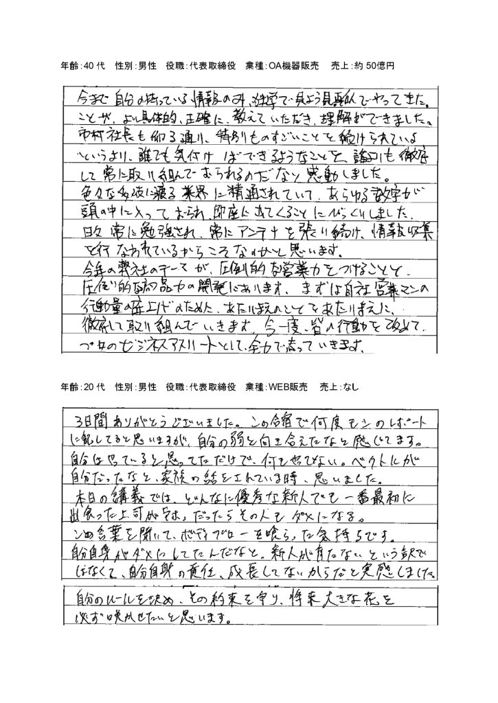 第135回/第136回特設経営者合宿のお声(一部抜粋)